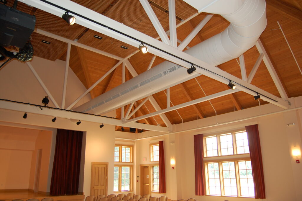 Winter Street Architects developed an addition that includes a versatile multi-purpose room designed to function as a community meeting space or performance hall. The expansion also features climate-controlled book storage, a student center, gallery space, kitchen, reading and collaboration rooms, and administrative offices. The project was thoughtfully designed and constructed with a strong focus on sustainability, incorporating strategies such as enhanced daylighting, energy optimization, geothermal heating and cooling systems, and environmentally conscious interior materials.
