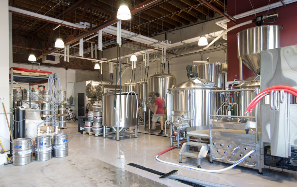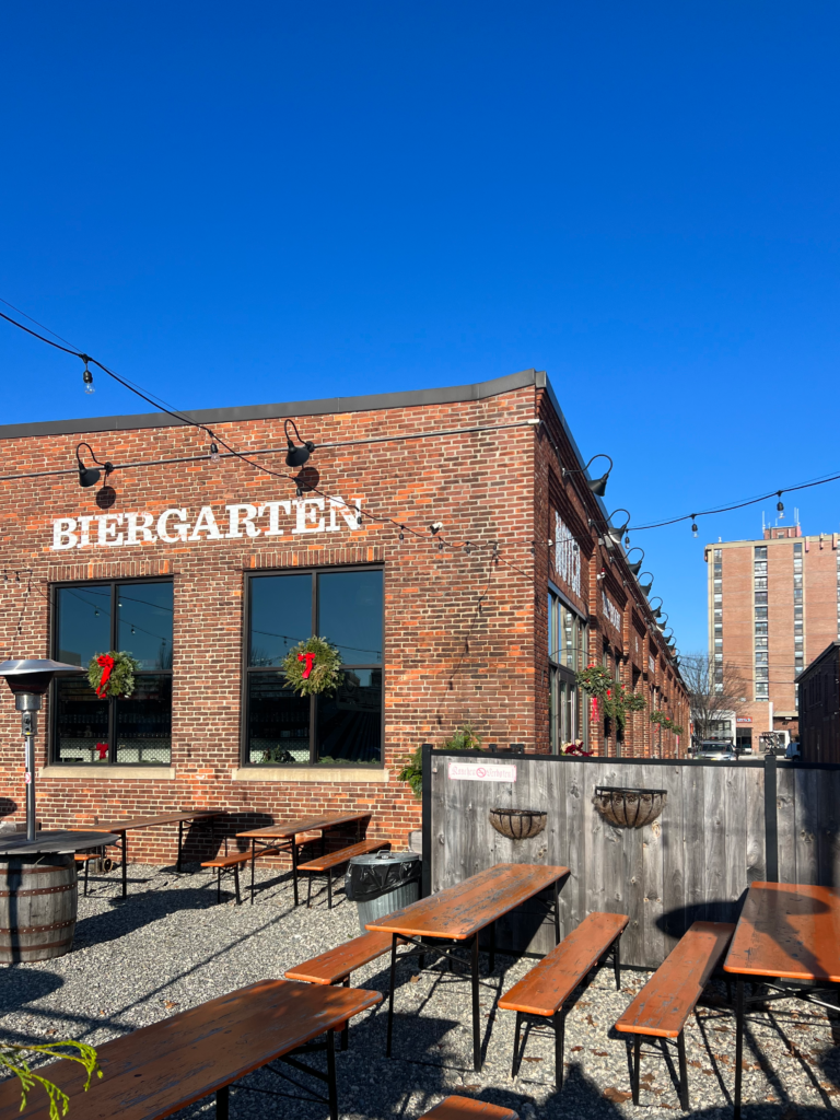 This undervalued space at the water edge end of a commercial row underwent a dramatic transformation from a crowded low-ceilinged retail space into a bright and welcoming restaurant with interesting views of the shiny stainless steel brewhouse, and a seamless transition to the ever popular Biergarten.