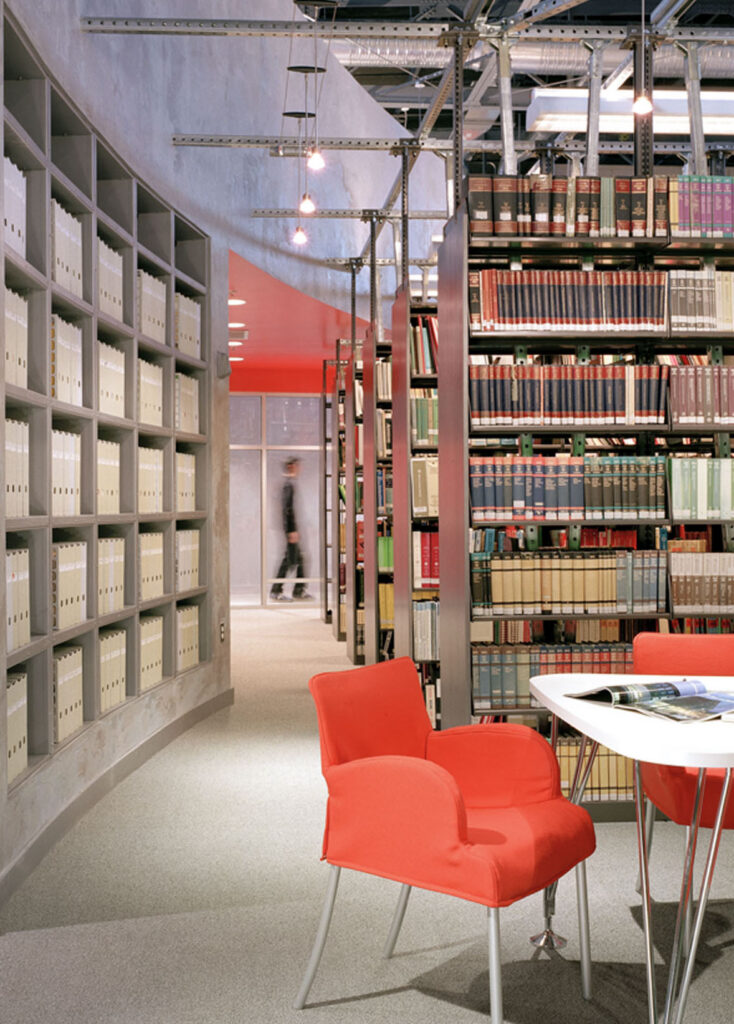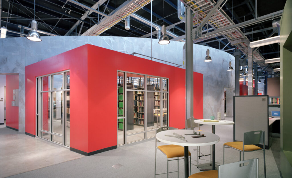 The tenant improvements called for 53,000 square feet of space with a combination of closed and open corporate offices, laboratories for destructive testing, a large resource library, a training room, as well as various support spaces, including furniture services for all of the spaces. The client’s primary design goals were to enhance and support their corporate culture of life-long learning and to help them to tell their story through built space. The overall design strategy involved locating the primary shared functions, structure a promenade through the space, reflecting light into the lower side bays and activating the fields of departmental office neighborhoods around the shared core